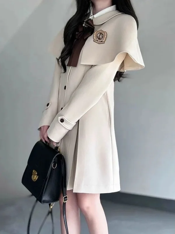 Elegant School Style Women's Jacket Coat Slimming Waist Design Long Sleeve Flip Collar Mid-Length Autumn Winter Outerwear