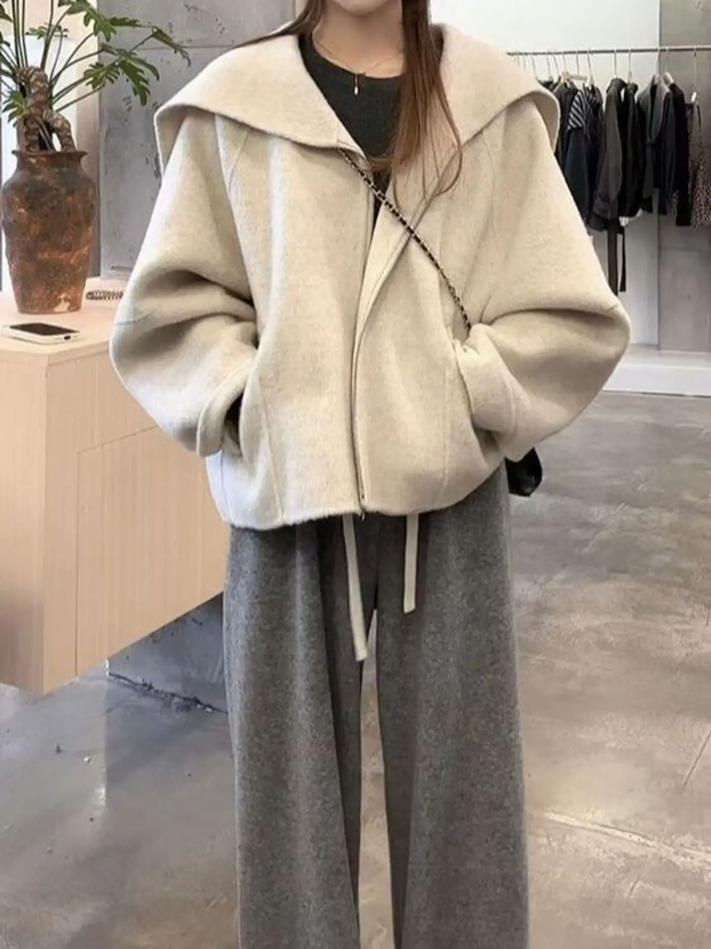 Fashionable Short Navy Collar Woolen Coat Women's Autumn Winter Style Korean Standard Fit Casual Elegant minus Age Cardigan