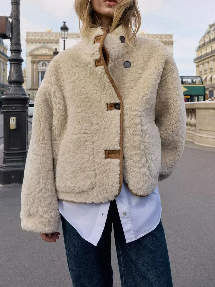 Double-Sided Jacket Sweet Elegant Fashionable Winter New Arrival Women's Short Coat Casual Style Long Sleeve Button Closure