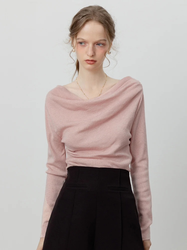 Eggka Korean Sle One oulder Waist Cinched Knitwear Long Sve Women's irt Casual Comfortable Soft French Sle Slim Fit