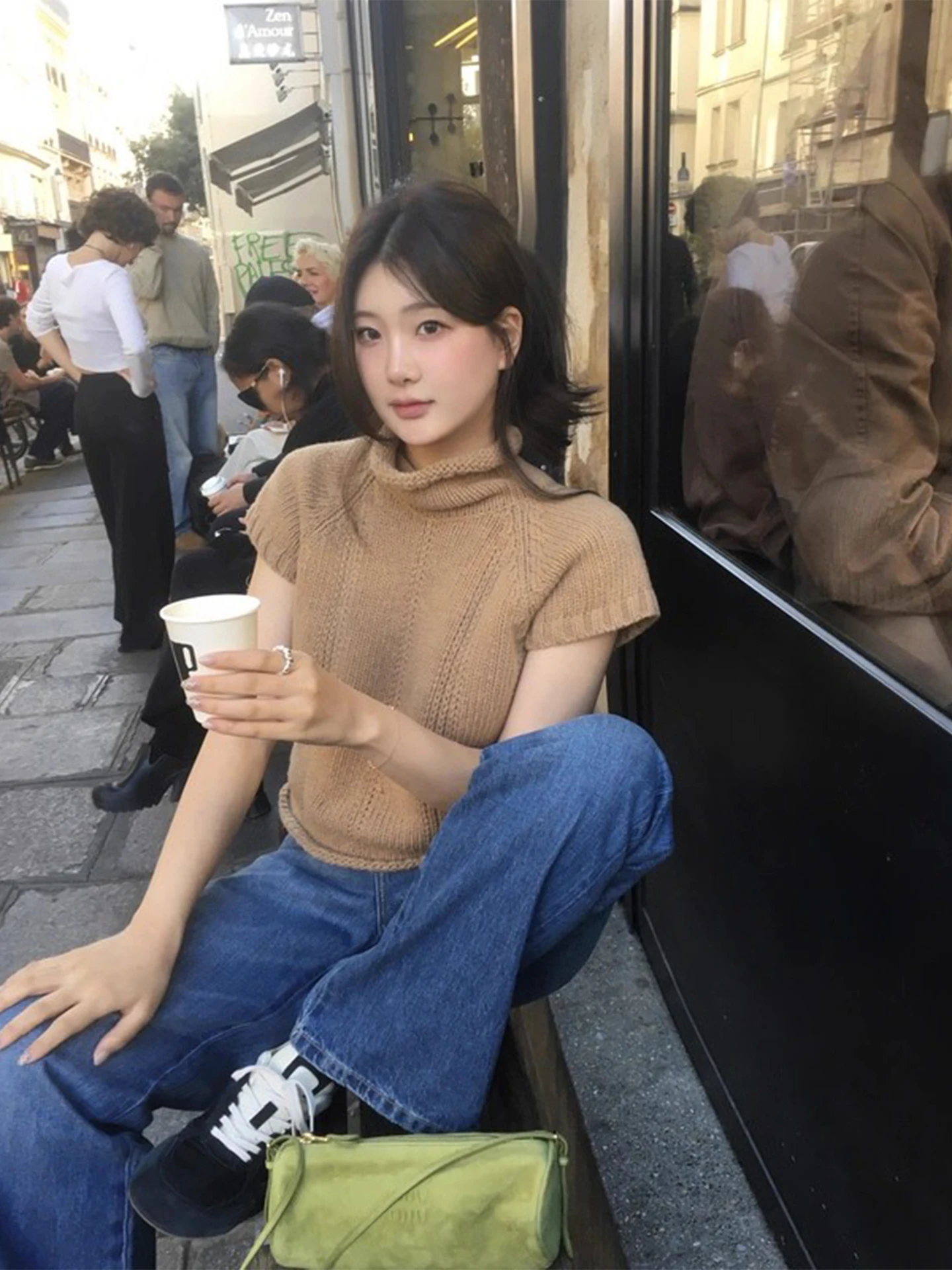 Retro Stand Collar ort Sve Knitted Sweater Women's Hollow out Embroidery Loose Fit Versatile Autumn New Sle Korean Sle