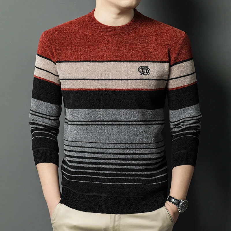 New Fashion Autumn Winter 2025 Men's Striped Casual Trendy O-neck Long Sleeve Spliced Knitted Sweaters Male Pullovers Clothes