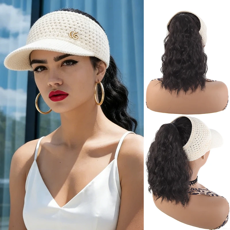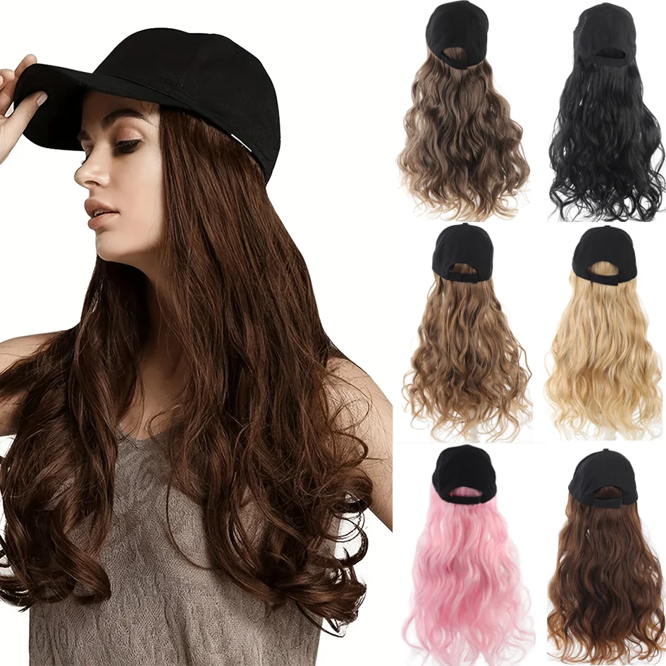 Synthetic Hat Wig 20 inch black baseball cap water wave wig ducktail wig blonde wig brown wig pink wig hat extensions christmas