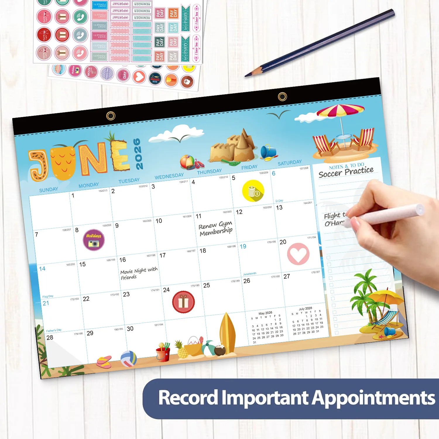 New Jan. 2026 - Jun. 2027 2026 Calendar with Hook Thick Paper Wall Calendar Colorful Daily Study English Calendary Office