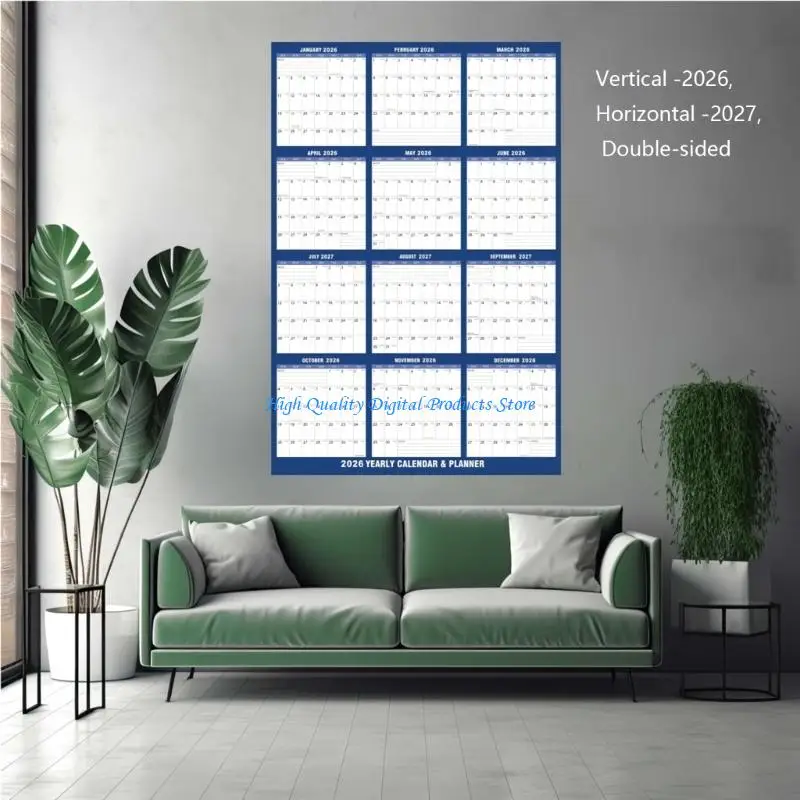 Erasable Yearly Planner Calendar Giant Reusable Wall Calendar Blank Undated Yearly Calendar for Organizing & Planning