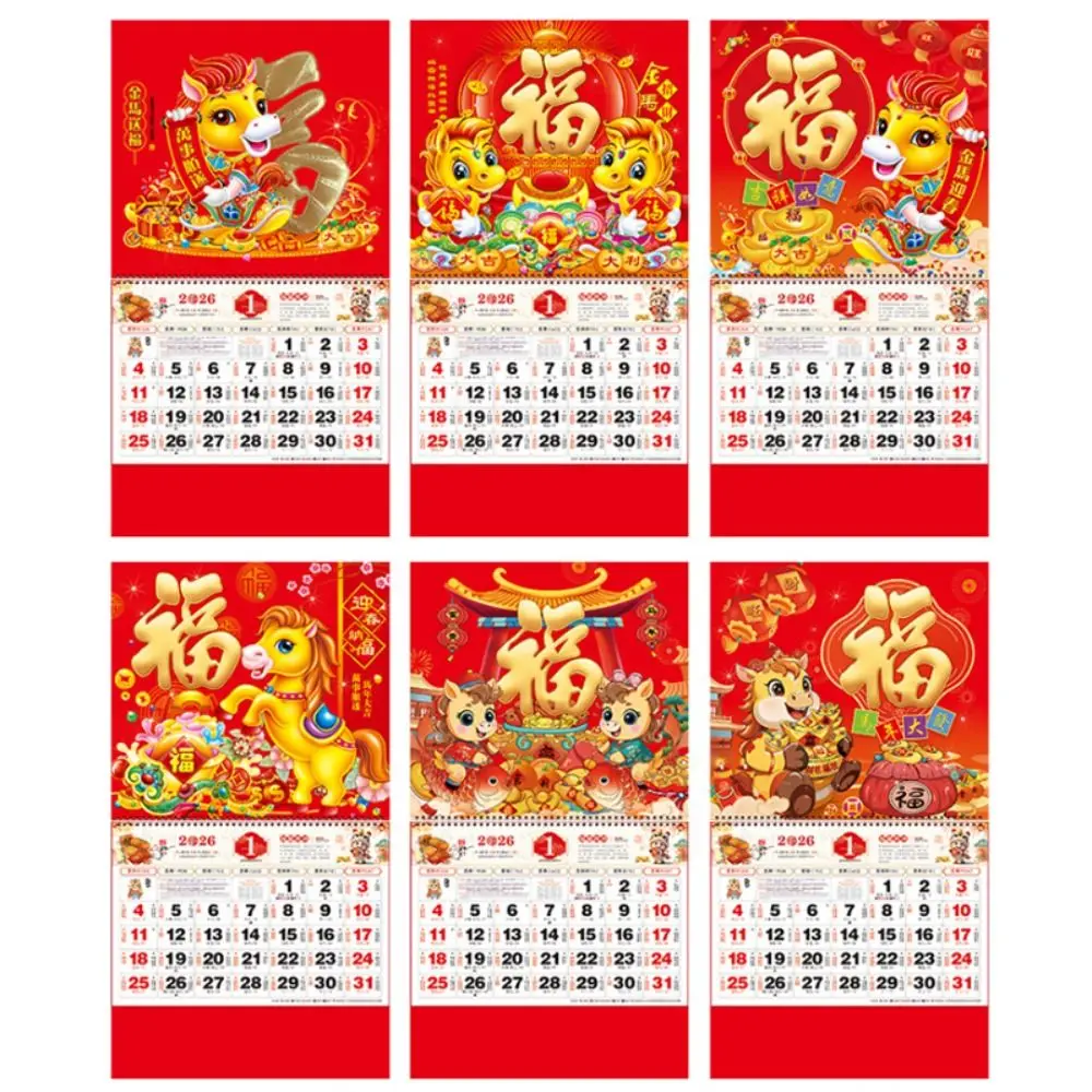 Chinese Zodiac Horse Year Wall Calendar 2026 Paper Monthly Tear-Off Planner Traditional Lunar New Year Hanging Wall Calendar