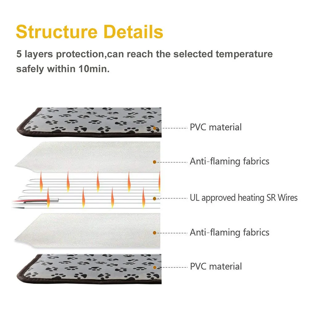 Pet Warmer Electric Heating Pad Footprint Design Winter Warm Sleeping Cushion for Dogs Cats Senior Arthritic Recovering Newborn