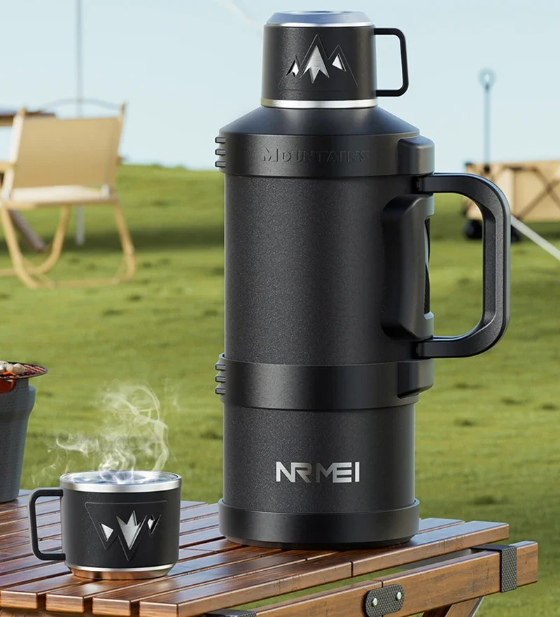 Stainless Steel Large Capacity Thermos Bottle with Foldable Handle, Outdoor Portable Vacuum Flasks, Insulated Thermal Bottle