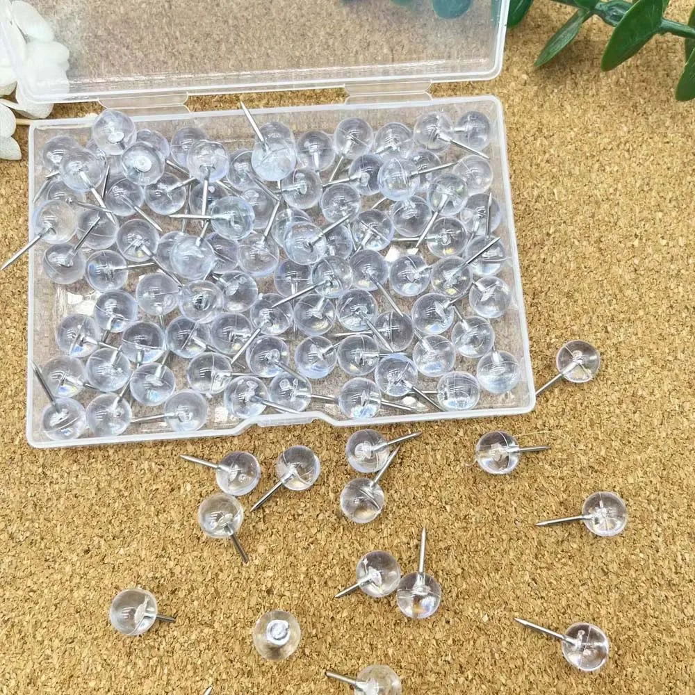 100Pcs Thumb Tacks Clear Transparent Pushpin Hooks for Wall Cork Board Bulletin Board Photo Hanging Office Home School