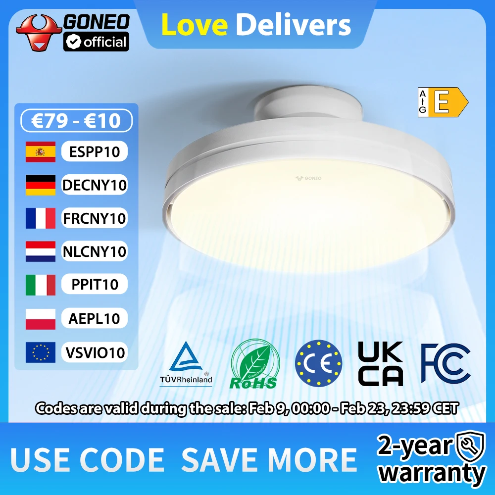 GONEO Bladeless Ceiling Fans with Lights Remote Control Timer 30W Dimmable LED Ceiling Light with Fan DC Motor Ceiling Fan