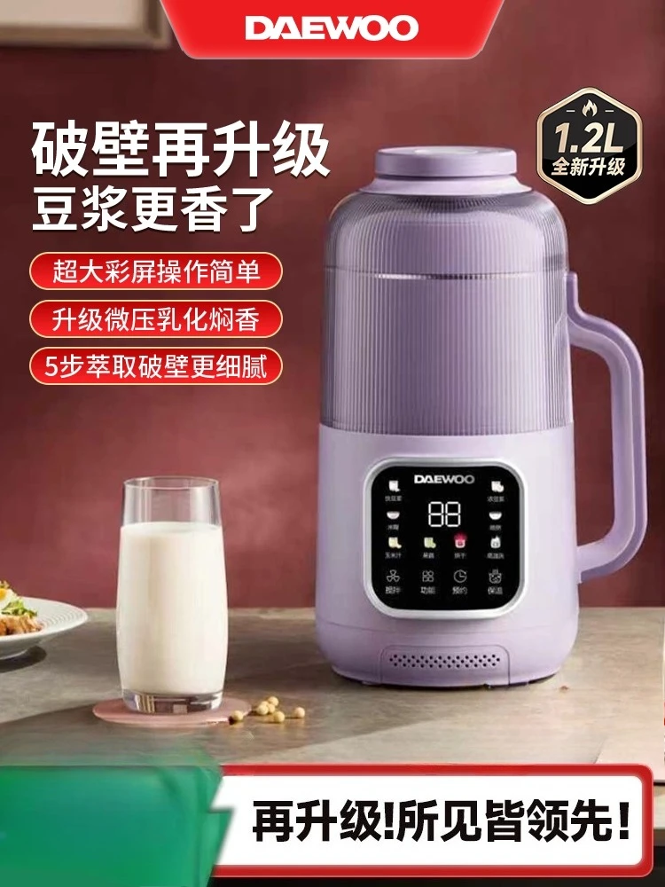 DAEWOO New Broken Wall Soybean Milk Machine Household Silent Slag-free Automatic Small Juicer Soy Milk Maker