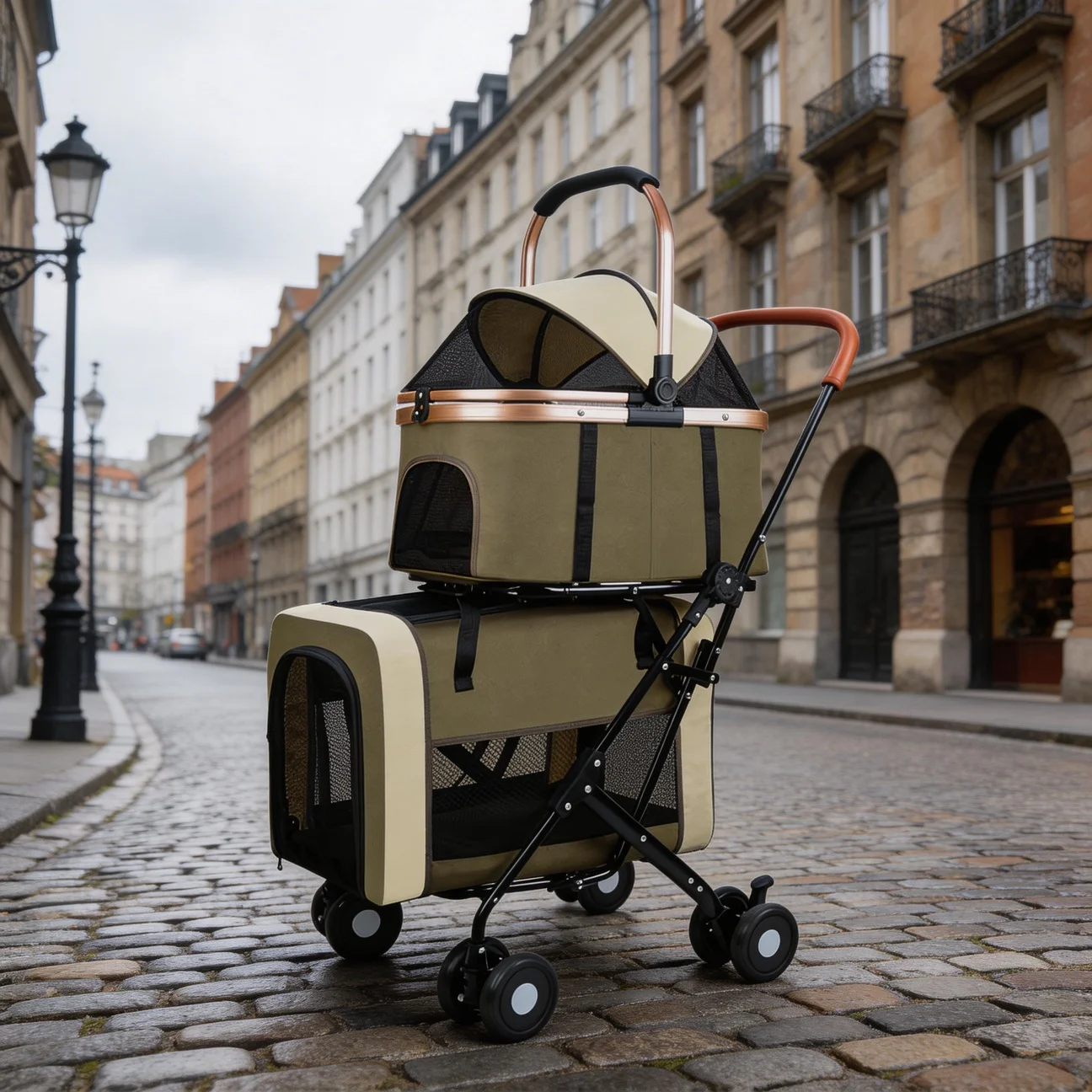 For Small Medium Pets Multi Pet Foldable Dog Stroller Travel Carriage Detachable Carriers Safety Belts 4 Lockable Wheels Use