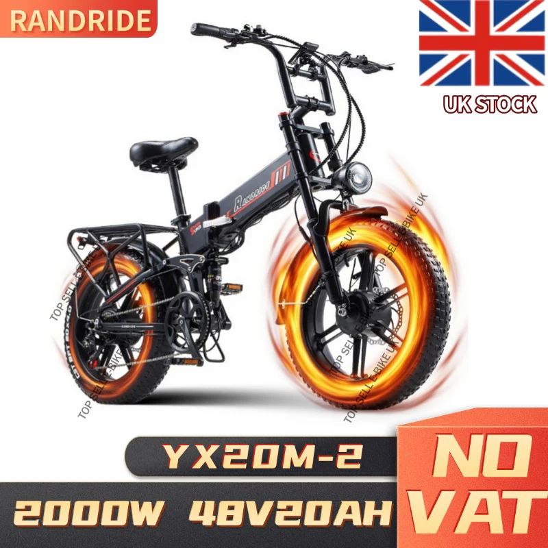 RANDRIDE YX20M-2 Electric Bike 1000W*2 Motor 20*4.0'' Fat Tires E-Bike 48V 20Ah Motorized Electric Two-wheeled Vehicle