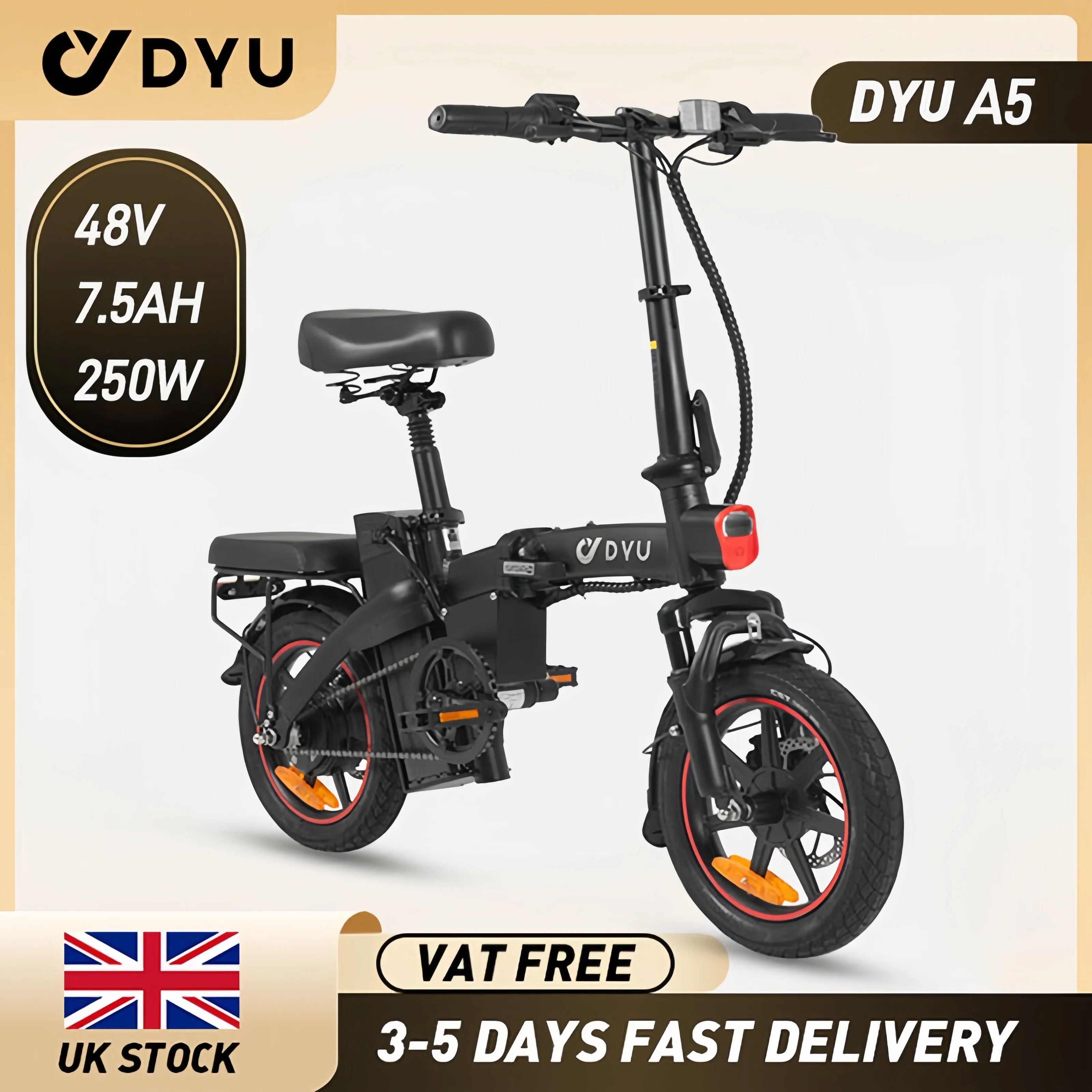 DYU A5 Adult Electric Bike 250W Motor Foldable Electric Bike 48V 7.5AH 14 Inch Tires City Commuter Electric Bike