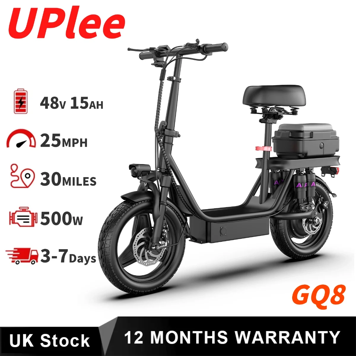UPlee GQ8 Adult Electric Bike 750W Peak Motor 48V15AH electric scooter 14 Inch fat tire Full Shock Foldable with trunk e bike