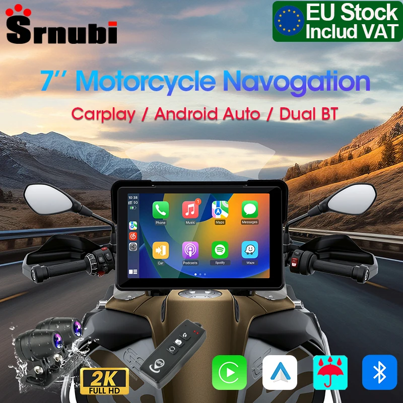 Srnubi 7 inch Screen Portable Motorcycle 2K Full HD Wireless Carplay Android Auto Waterproof Motorcycle GPS Navigation Monitor