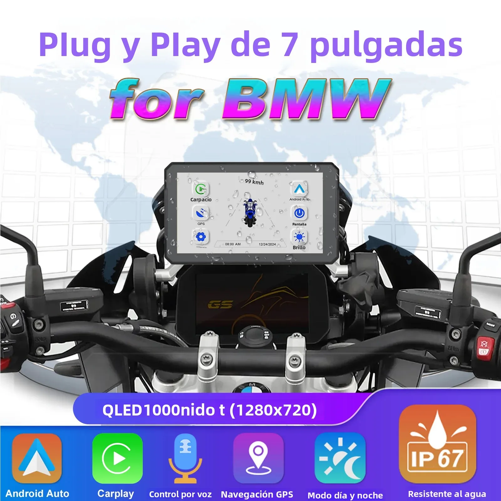 For BMW Style 7" Universal Motorcycle GPS Navigation With Original Style Bracket Wireless Carplay Android Auto IPX7 Waterproof
