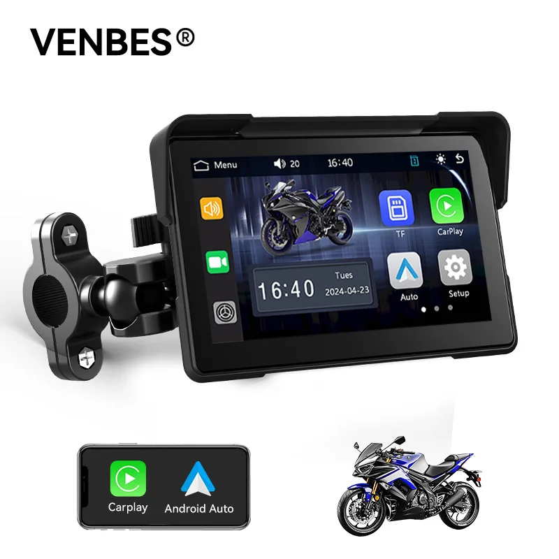 VENBES 5 Inch Motorcycle Carplay Carplay&Android Auto IP67 Waterproof GPS Navigation with Bluetooth 5G WIFI