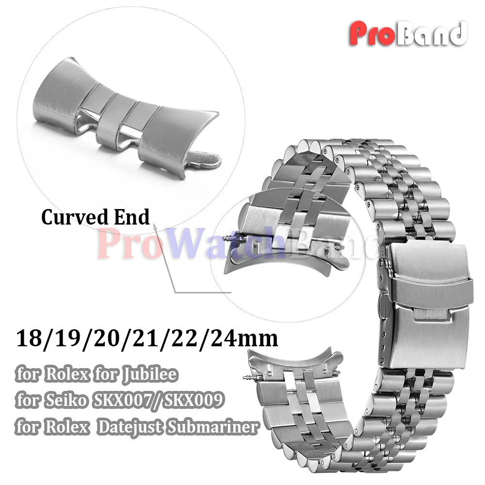 2pcs for Oyster Curved End 20mm 22mm for Seiko SKX009 SKX007 Strap Connector Stainless Steel Watch Repair Tools Accessories
