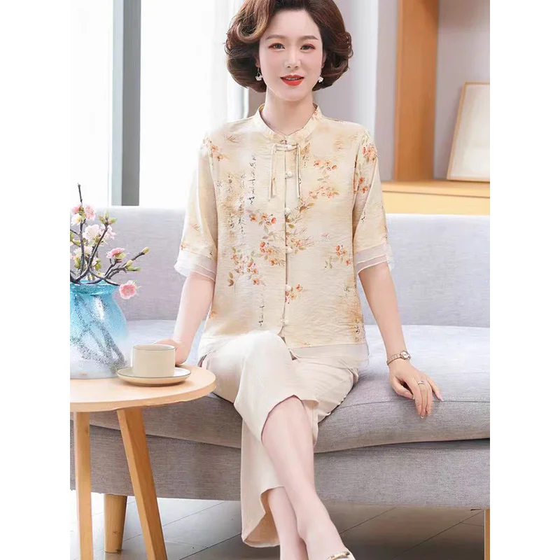 New T-shirt+pants Set Women's Summer Cool Clothing Plus Size Comfortable Women's Two-piece Set With Buttons T-shirt Outdoor