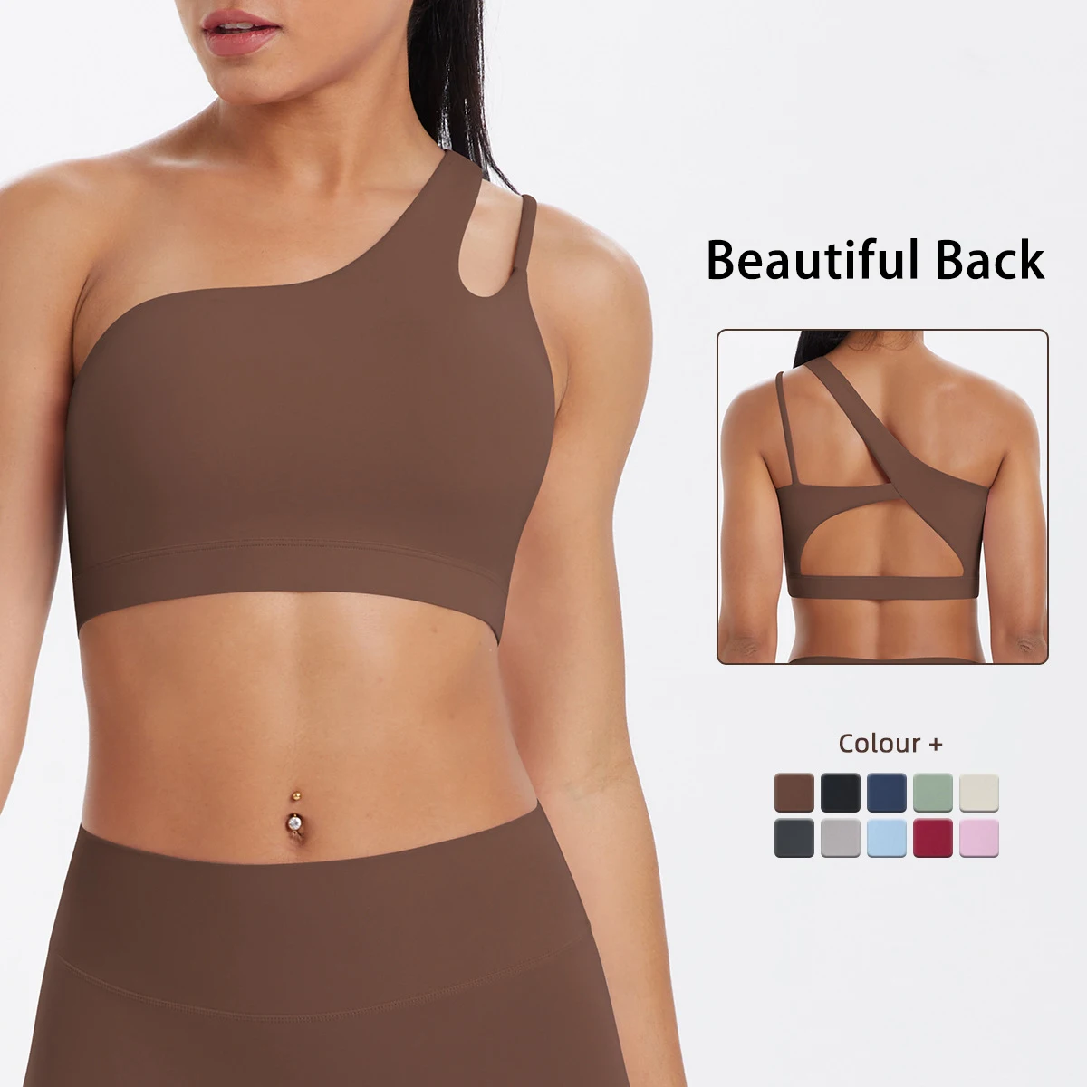 Hamidou Summer Yoga Bra Woman Yoga Underwear with Chest Pad Shockproof Workout Top Single Shoulder Bra Backless Gym Yoga Vest
