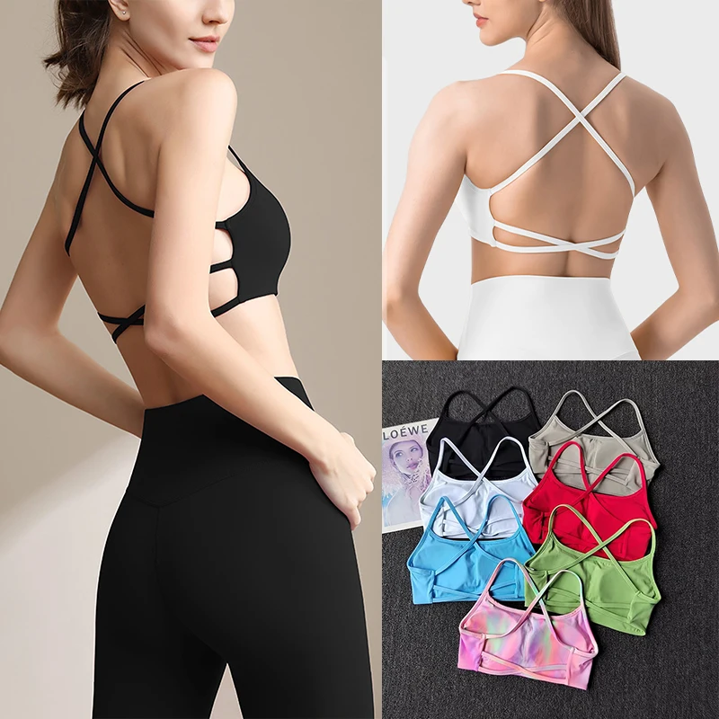 Women Gym Top Cross Back Sports Bra Yoga Clothing Women's Athletic Tight Workout Jog Soft With Chest Pad Fitness Sport Underwear
