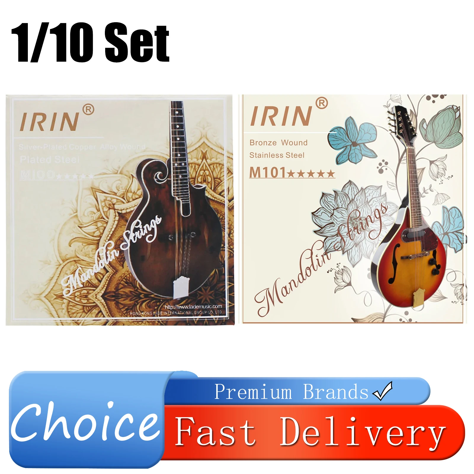 Mandolin Set IRIN M101 Full Set Mandolin Strings Bronze Wound Stainless Steel Silver & Gloden Color (.010-.034)