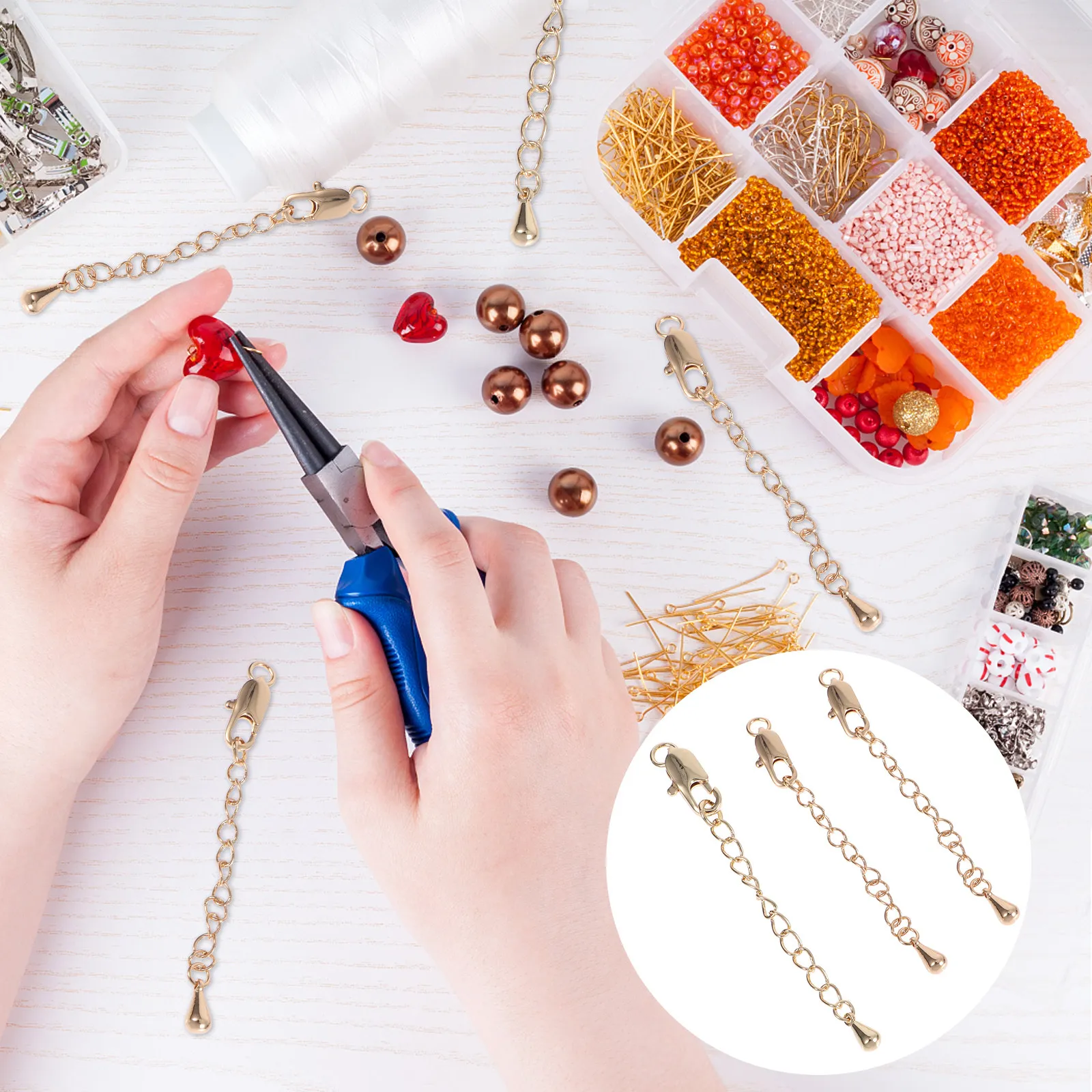 3pcs Long Rectangle Clasp Extender Chain Lobster Buckle Diy Jewelry Making Accessories Necklace Extension Chain For Bracelets