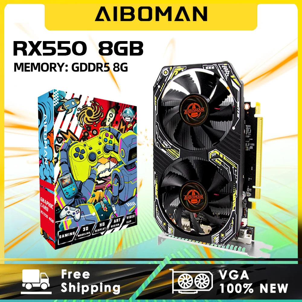 AIBOMAN Black Yellow Cool AMD RX550 4GB GDDR5 Graphics Card 128Bit Dual Fan Computer Assembly Accessories Electric Office Games