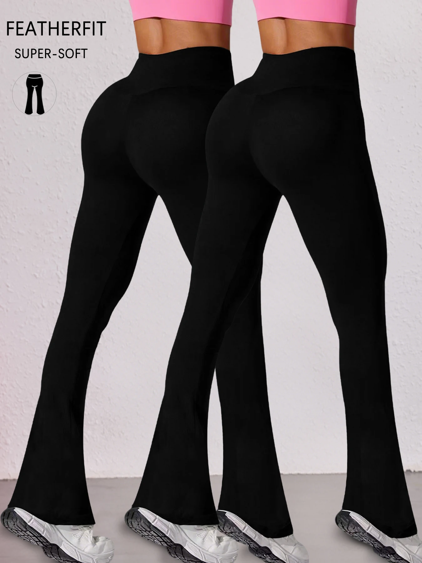 2 Pack Plus Size Women's Super Soft High Waisted Flare Pants, Leggings Tummy Control Soft Bootleg Bell Bottoms Running