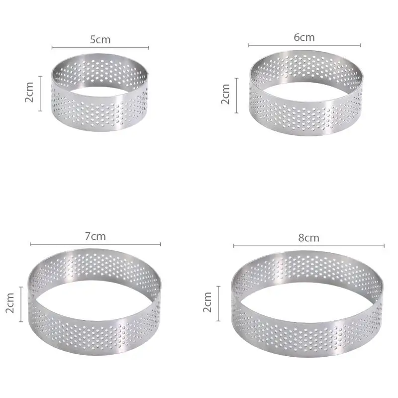 5/6/7/8CM With Hole Tart Bottom Tower Fruit Pie Quiches Baking Tool Classic 304 Stainless Steel Mousse Ring Cake Mold