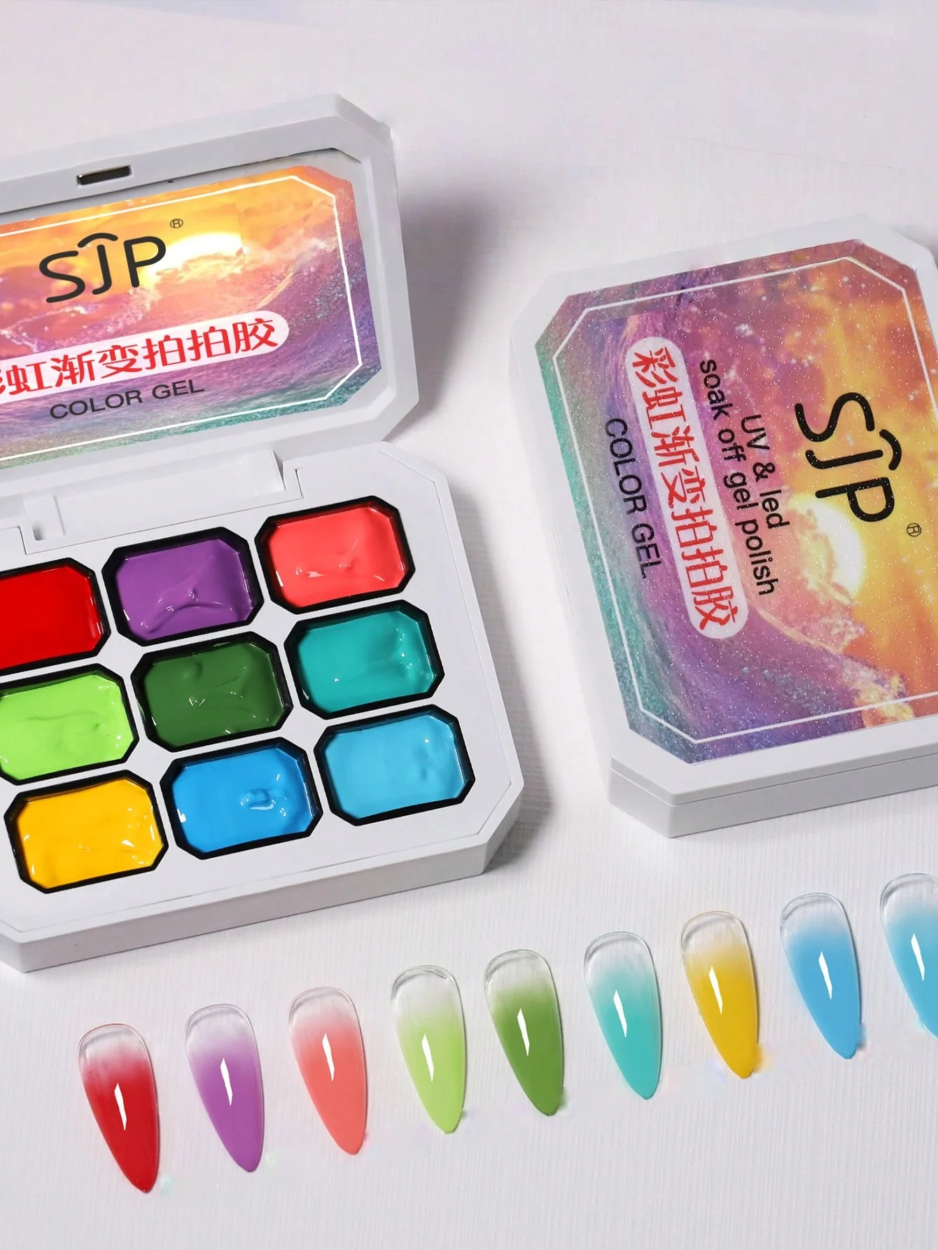 9 Colors Aurora Pearl Effect Solid Adhesive Gel Nail Polish Gradient Semi Permanent Soak Off UV LED Nail Art Gel Varnishes For N