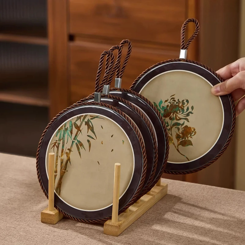 VIKAMA 4PCS Autumn Leaf Wreath Design Round Placemats Kitchen Dining Room Decor Home Accents Heat Resistant Placemats