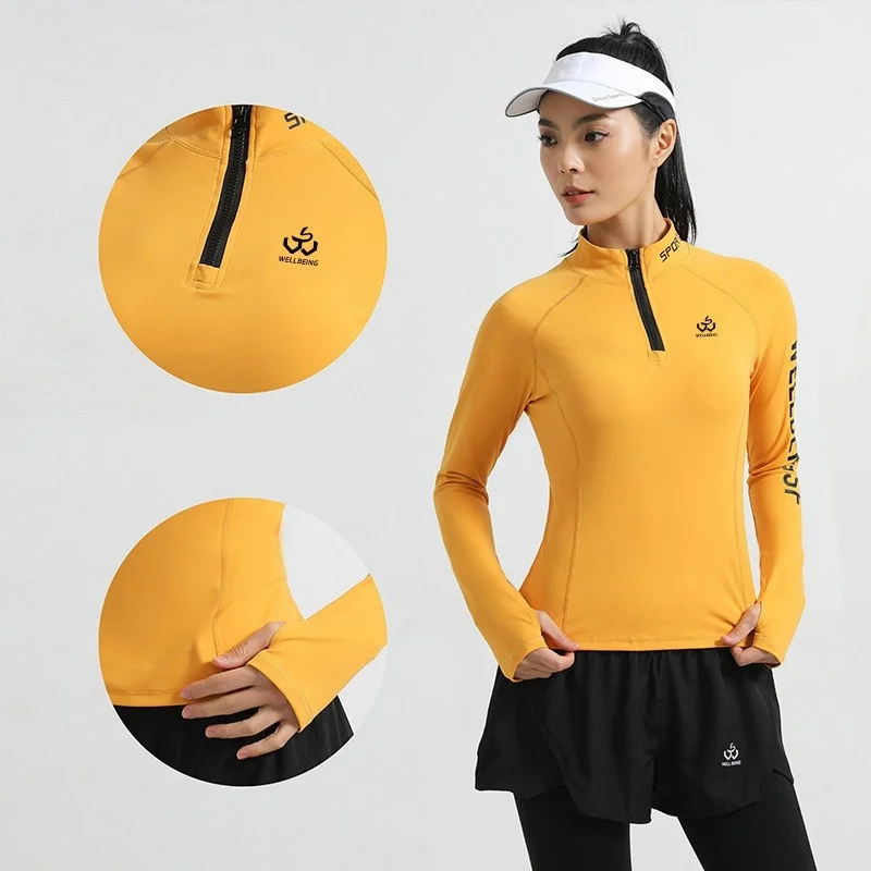 Korean Sle Golf Ladies Faion Simple 3D Logo Long Sve Stand Collar Slim Fit Sport Base irt Women's Long Sve T-irt