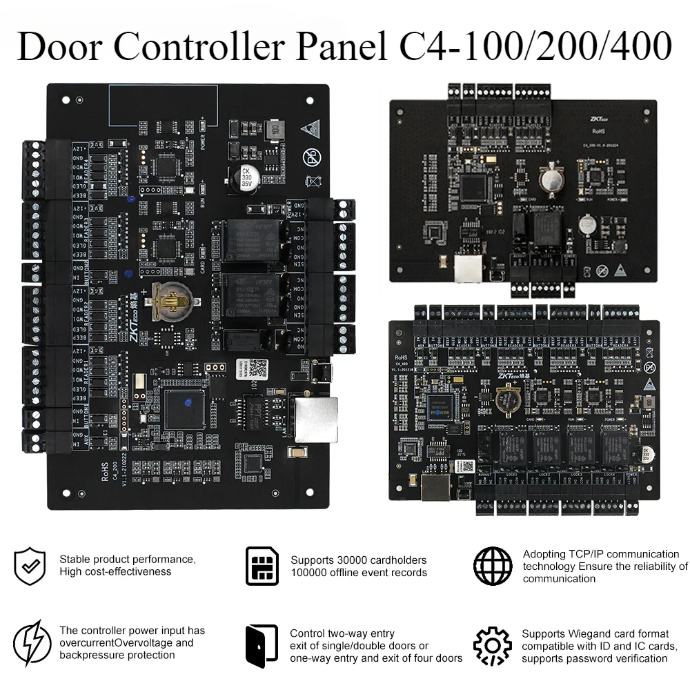 ZKTeco RFID Door Controller Panel ZKAccess3.5 C4-100 C4-200 C4-400 Tcp/Ip Electirc Lock Four Gates for Access Control System
