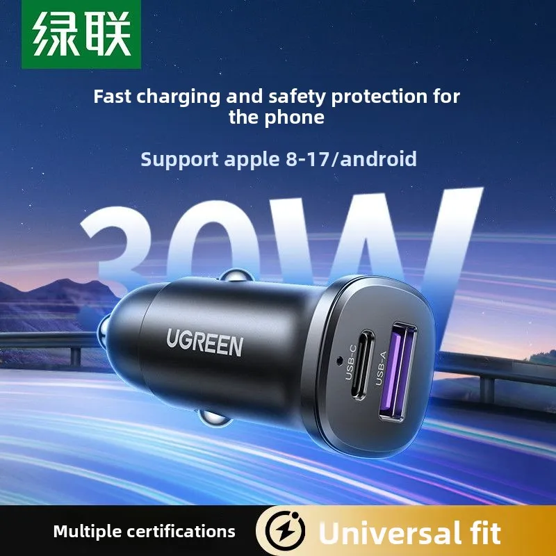 Green connected car charger is suitable for Apple 17/16 flash charging 30W/Huawei fast charging safety certified models