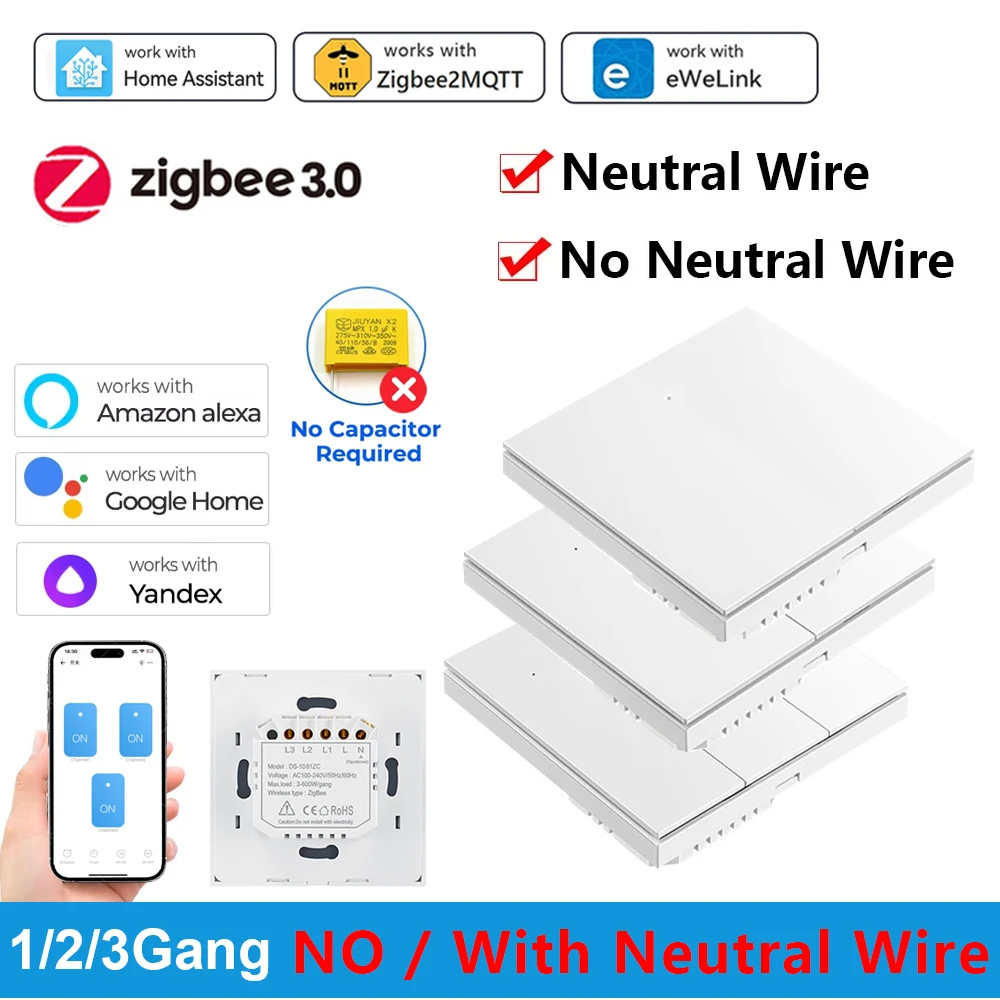 Zigbee EU Smart Light Switch No Capacitor Universal No/With Neutral Wire Wall Switch Push Button Works with Alexa Home Assistant
