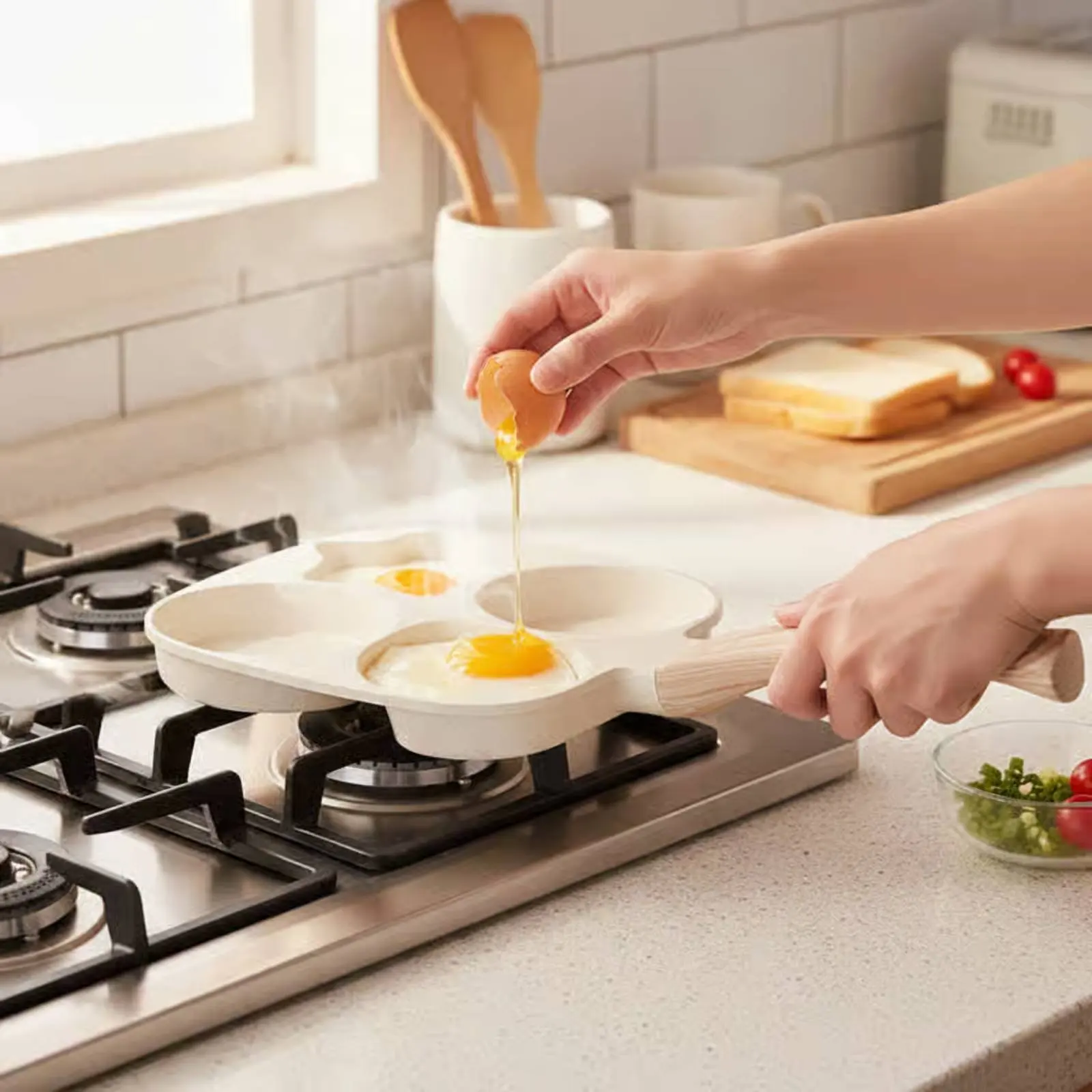Non-Stick Breakfast Pan PFOA-PFOA-Safe 4-Hole Frying Pan Divided Breakfast Skillet Fun Designs Multi-Section Griddle Dishwasher