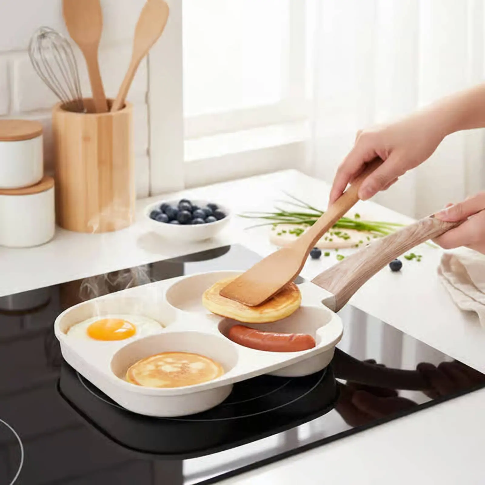 Non-Stick Breakfast Pan Long-Lasting 4-Hole Frying Pan Divided Breakfast Skillet Fast & Even Heating Shaped Pancake Griddle