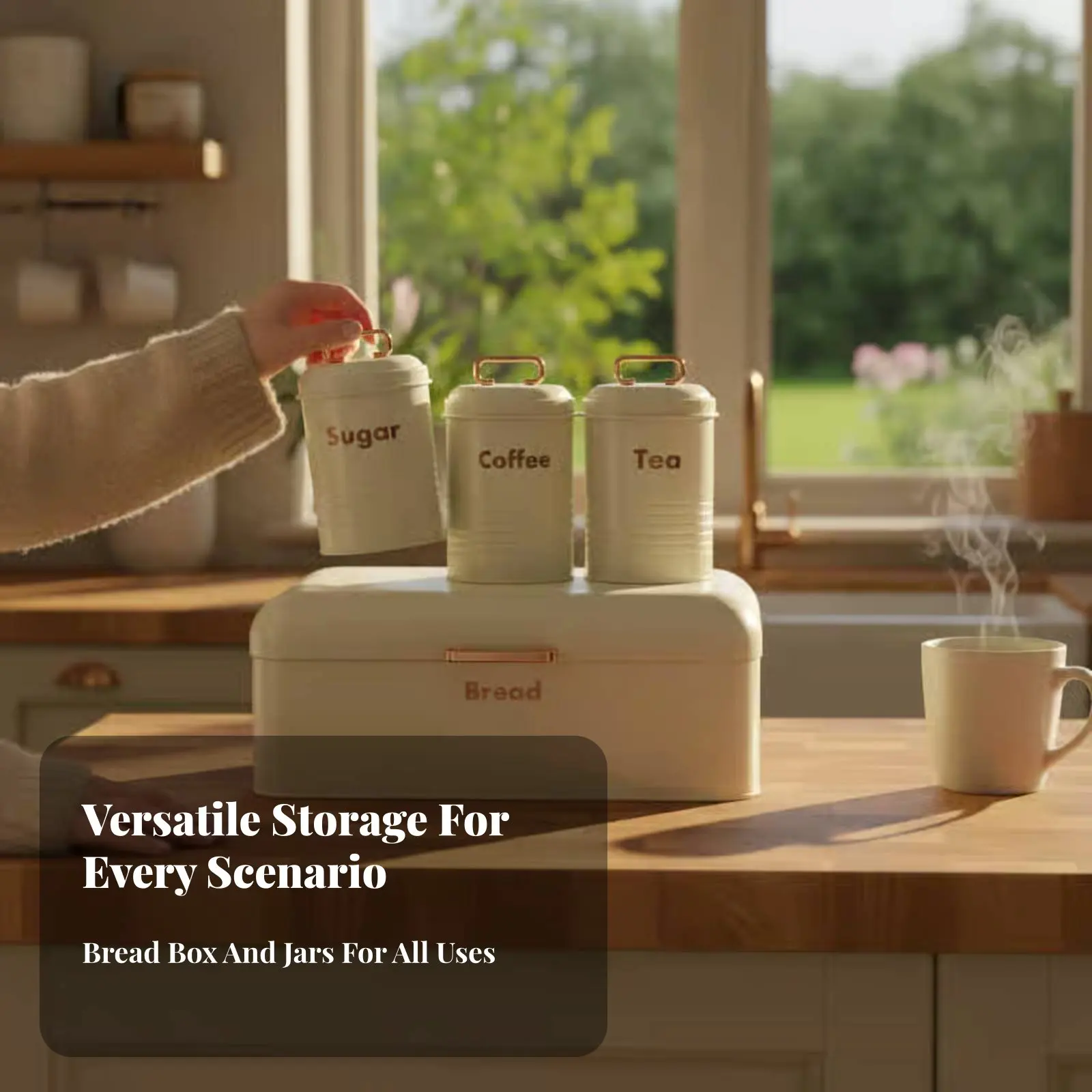 4 Pieces Bread Storage Container and Canister Set Powder Coated Finish Farmhouse Kitchen Organizer Set Tea Coffee Sweetener