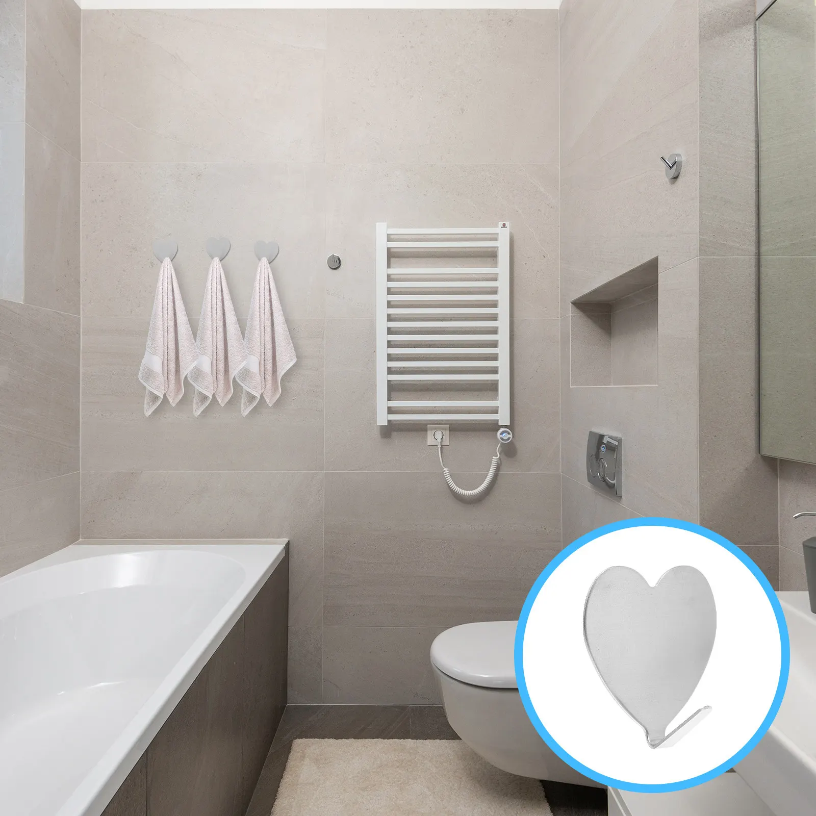 12Pcs Heart Design Iron Adhesive Hooks Scratch Resistant Strong Coat Hangers Wall Mounted for Kitchen Bathroom Bedroom
