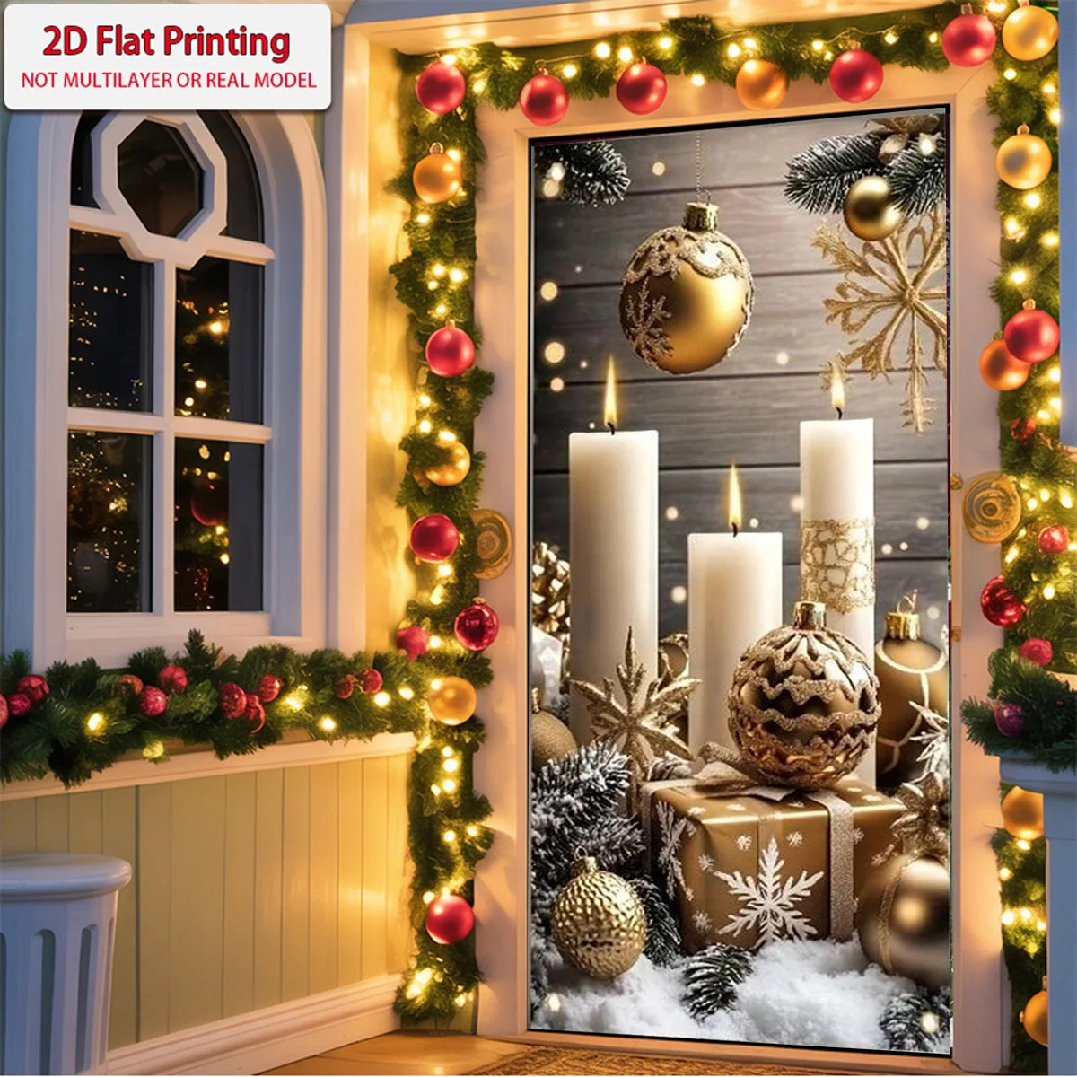 1pc Christmas Door Banner - Polyester Large 89.92x179.83 Cm Holiday Decoration with Merry Christmas Text, Candles, Presents