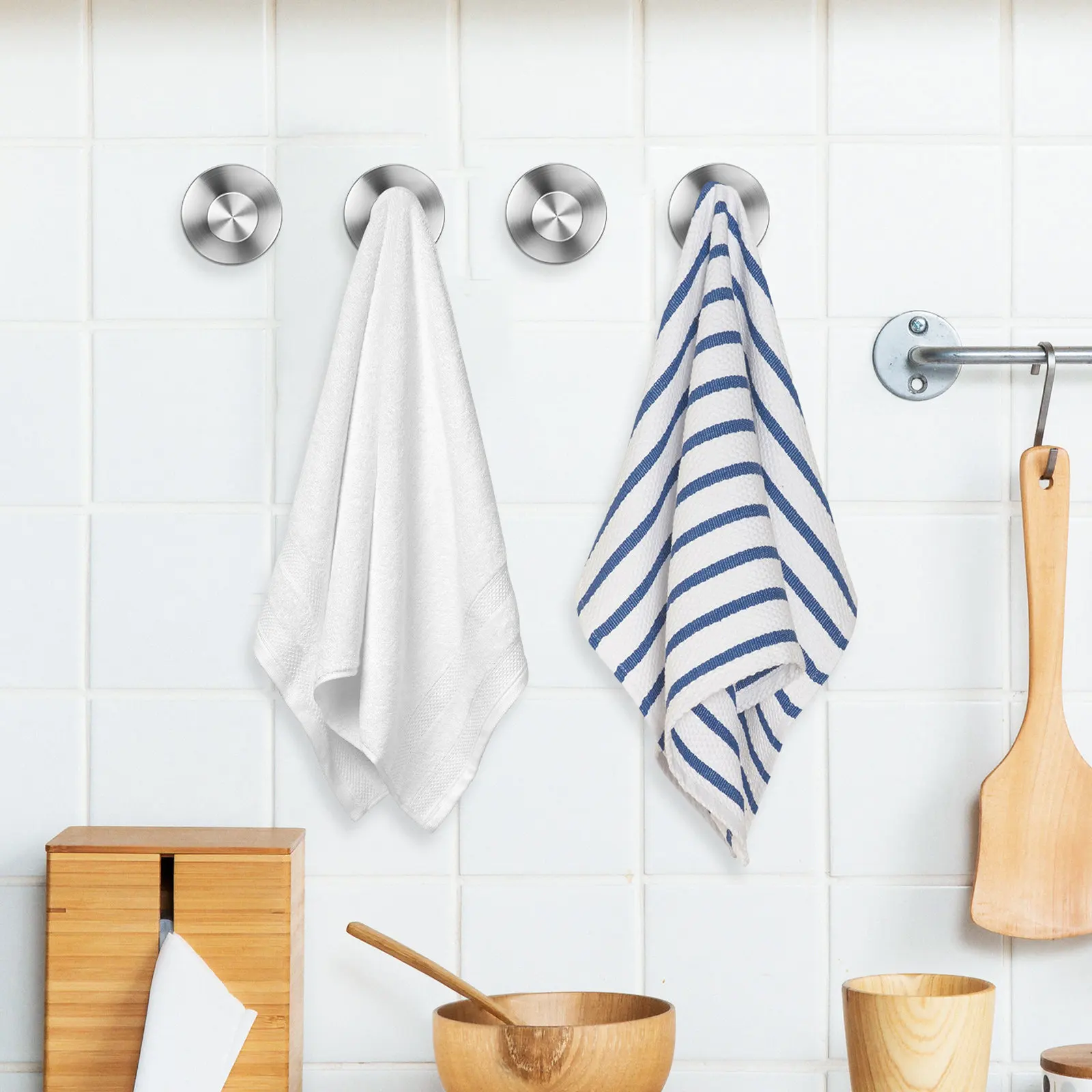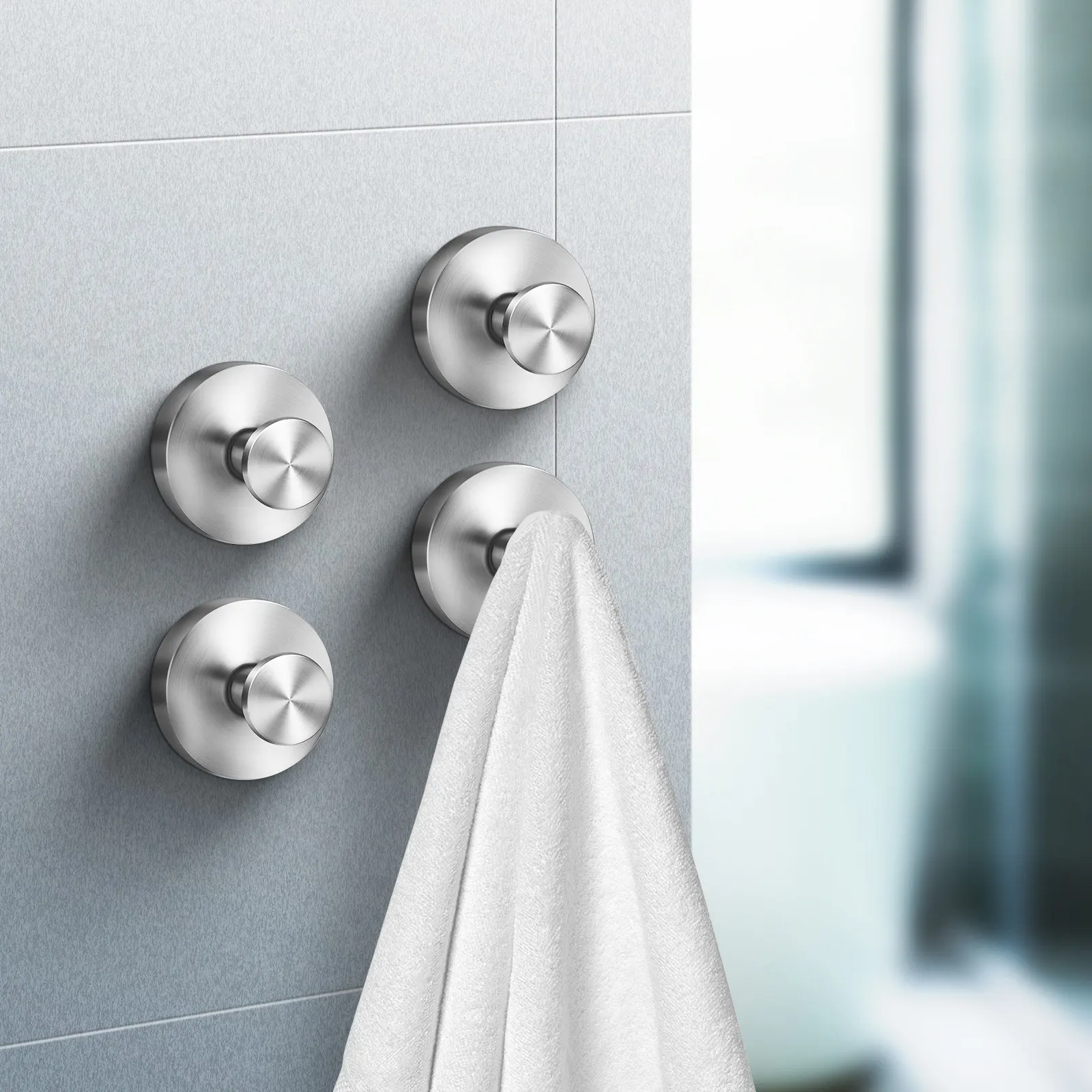 4Pcs Stainless Steel Suction Cup Hooks Modern Removable Towel Hangers for Bathroom Kitchen Wall Mount Bathrobe Loofah Organizer