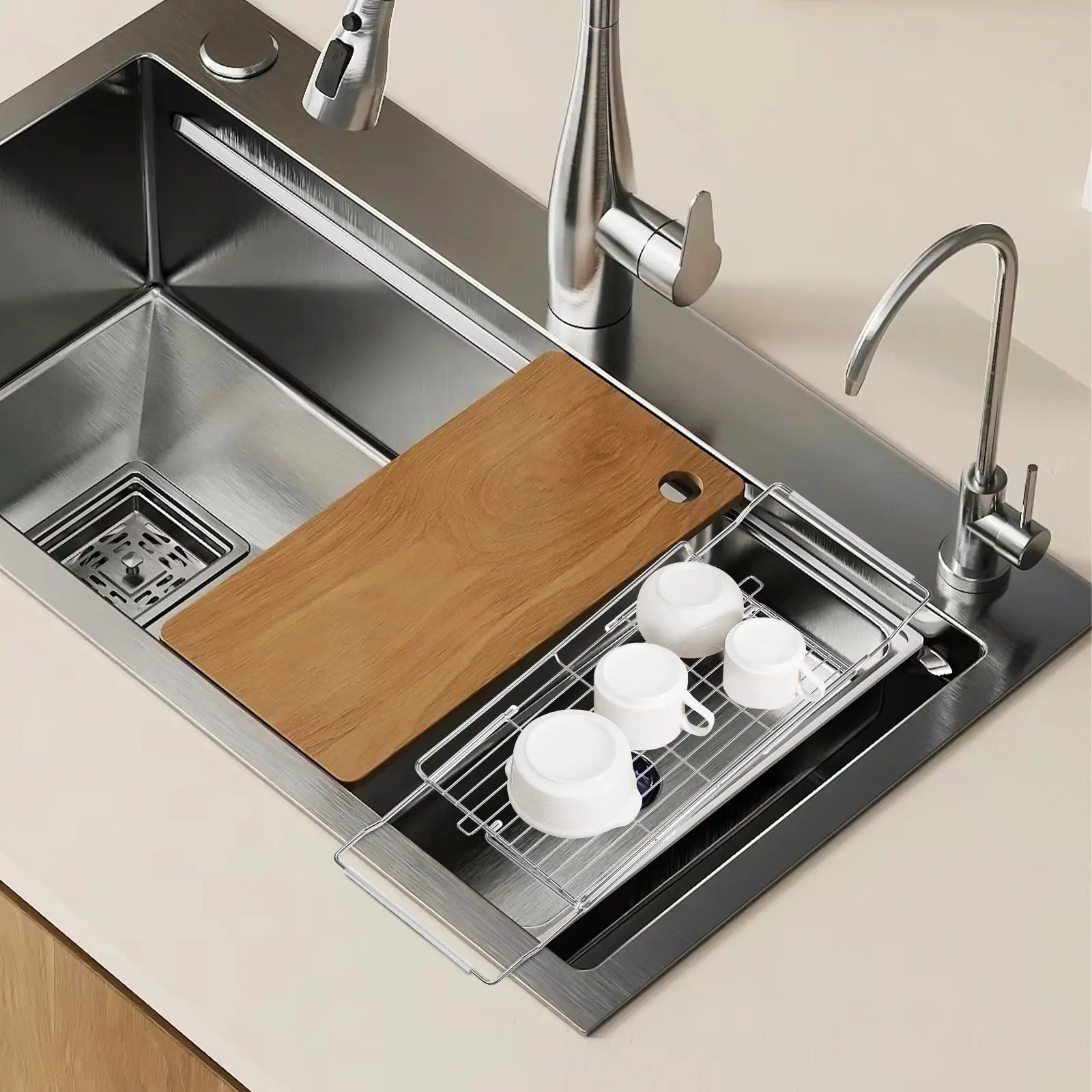 Telescopic Stainless Steel Sink Rack for Dishes - Expandable Over Sink Drying Rack Kitchen Storage Shelf Dish Drainer Adjustable