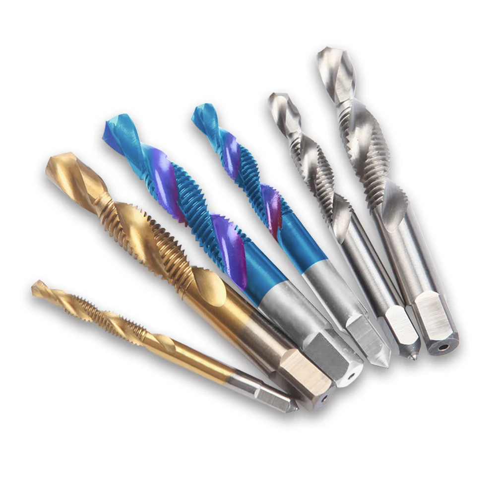 GB Standard HSS Combination Drill Tap Bit Set Titanium Coated Hex Shank Composite Taps M3 M4 M5 M6 M8 M10 Machine Thread Tool