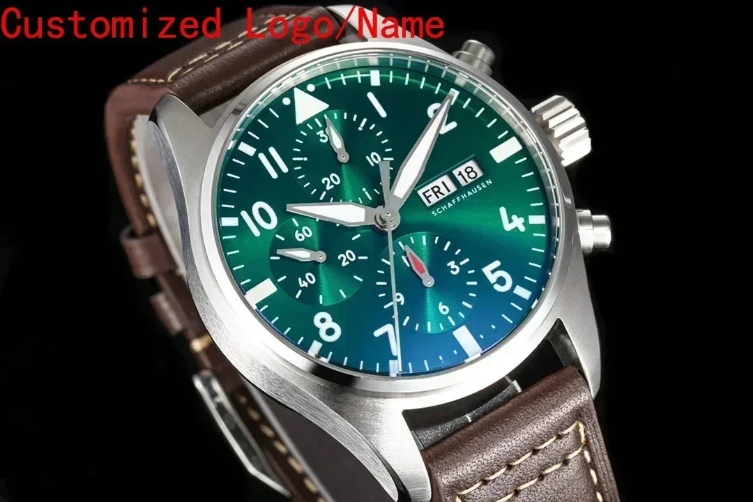 43mm Sapphire Glass Watch Pilots Red Blue Green Leather Men Mechanical Automatic Stainless Steel Customized