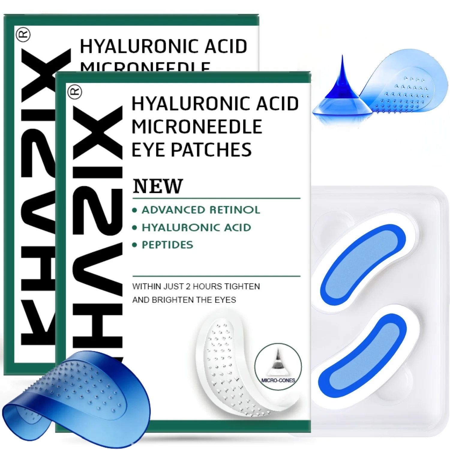 Retinol Microneedle Eye Patches with Hyaluronic Acid & Firming Peptides,for Forehead, Eye Area, Crow's Feet & Smile Lines,1Pair.