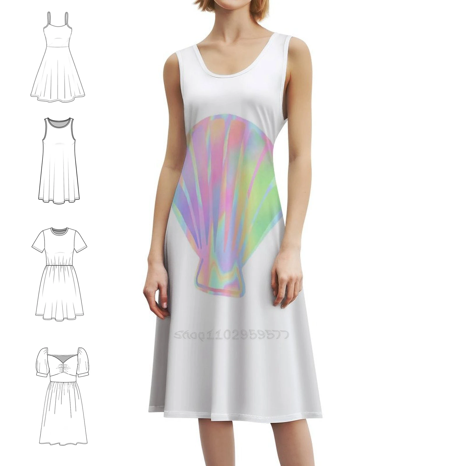 Holographic Shell Preppy Style Mini Dress For Women A-Line Loose Fit Casual Day Dress Holo Shell Mermaid Woman Clothes
