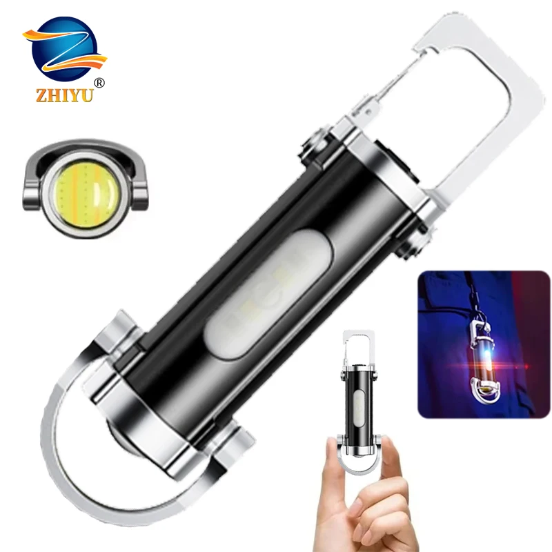 Mini Keychain Flashlight Rechargeable Pocket COB Working Light Outdoor Hook Emergency Warning Light for Camping Walking Hiking