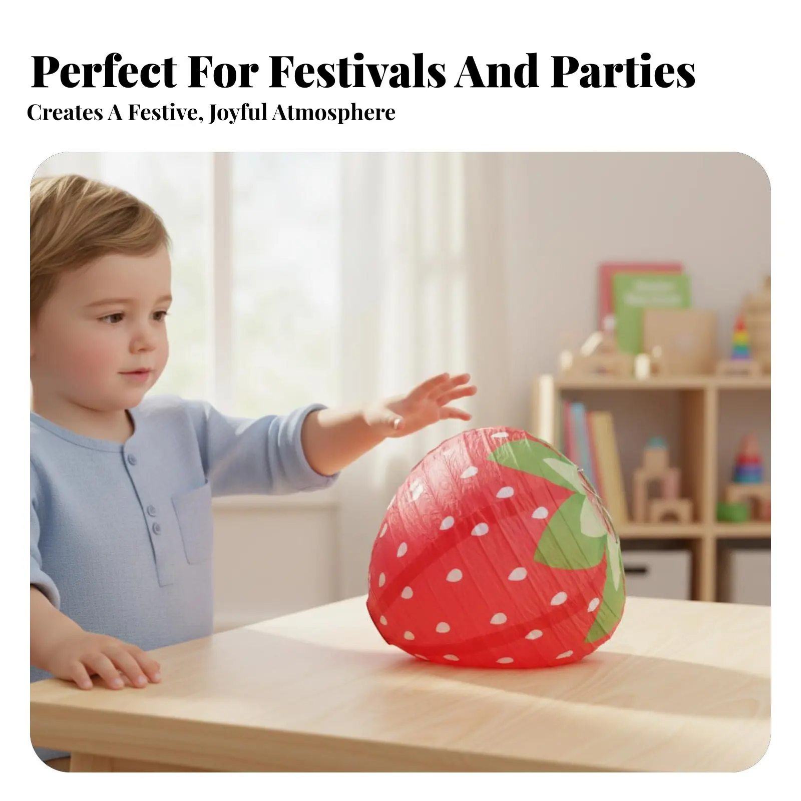 3D Strawberry Kids Lantern, Foldable Oval-Shaped Paper Lantern, Handmade DIY Decor for Festivals, Kindergarten
